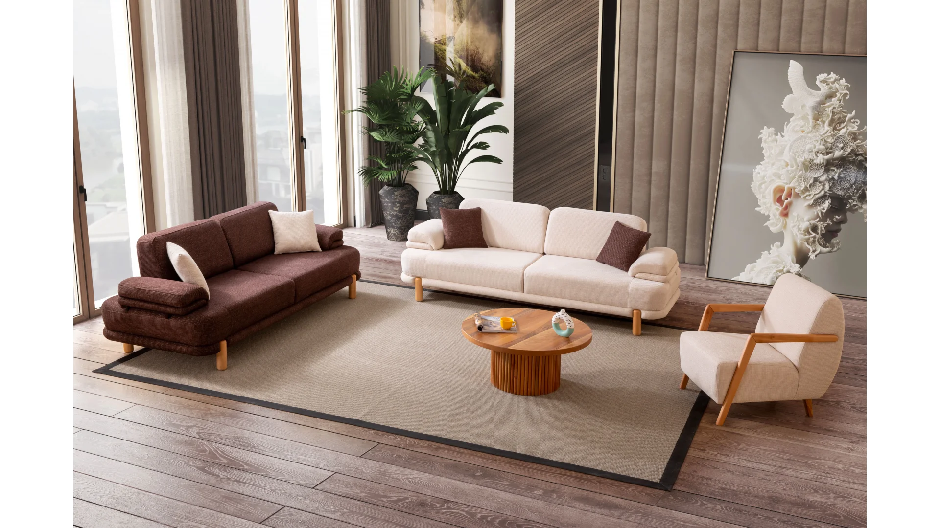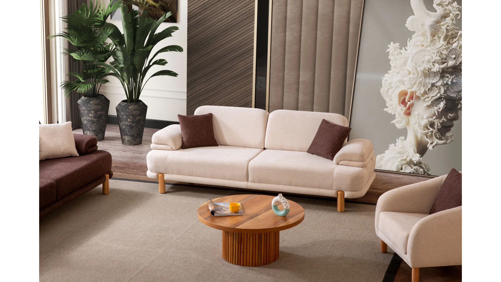 Occo Home Koltuk markasının Roma Koltuk Takımı, şıklığı ve konforu bir araya getiriyor. Oturma odalarınızı en şık şekilde dekore etmek için ideal bir seçimdir. Ürün Özellikleri:
