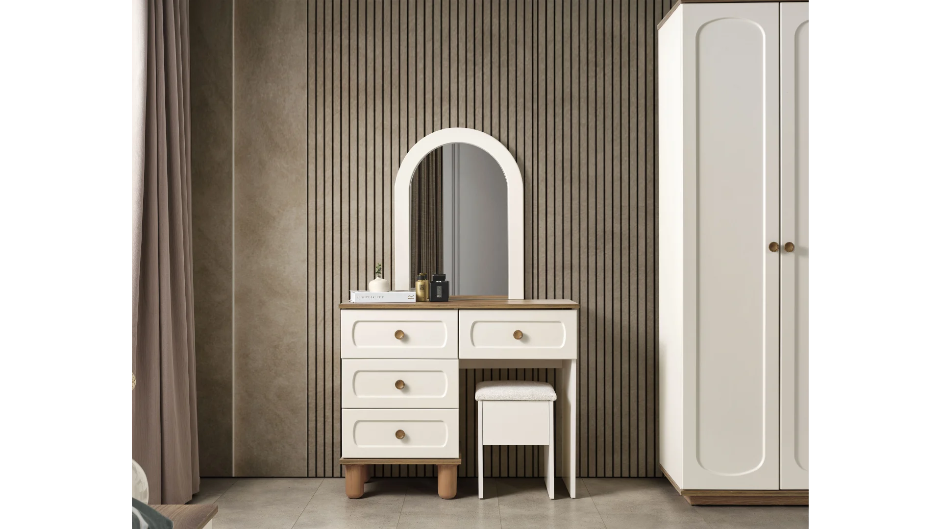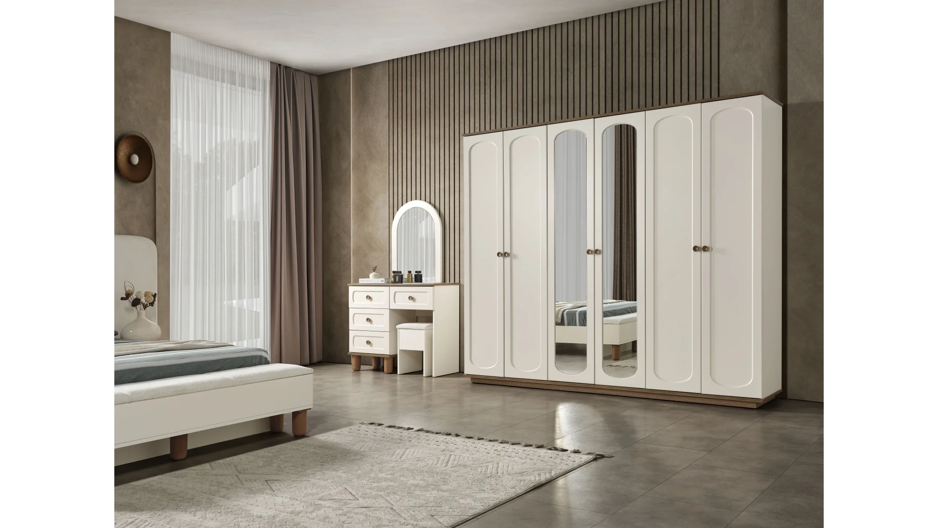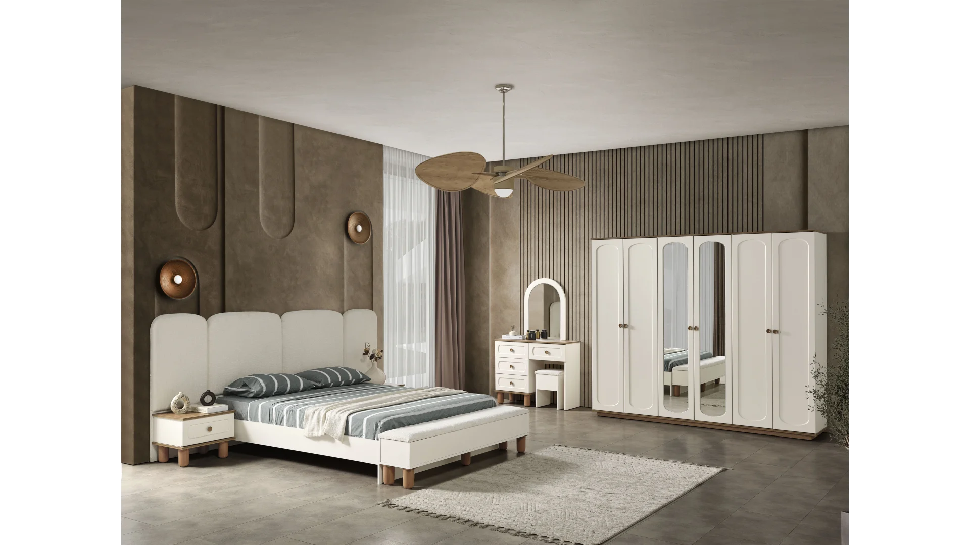 | Takım İçeriği | 1 adet Dolap,1 adet Karyola,1 adet Aynalı Şifonyer,2 adet Komodin |