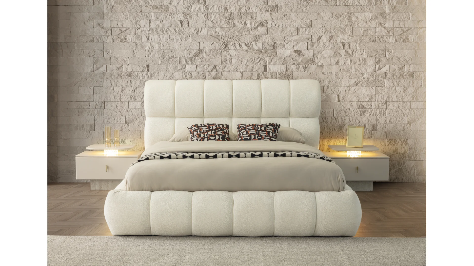 - Yatağın başlığındaki özel desenler ve detaylar ile odanıza estetik bir hava katar.