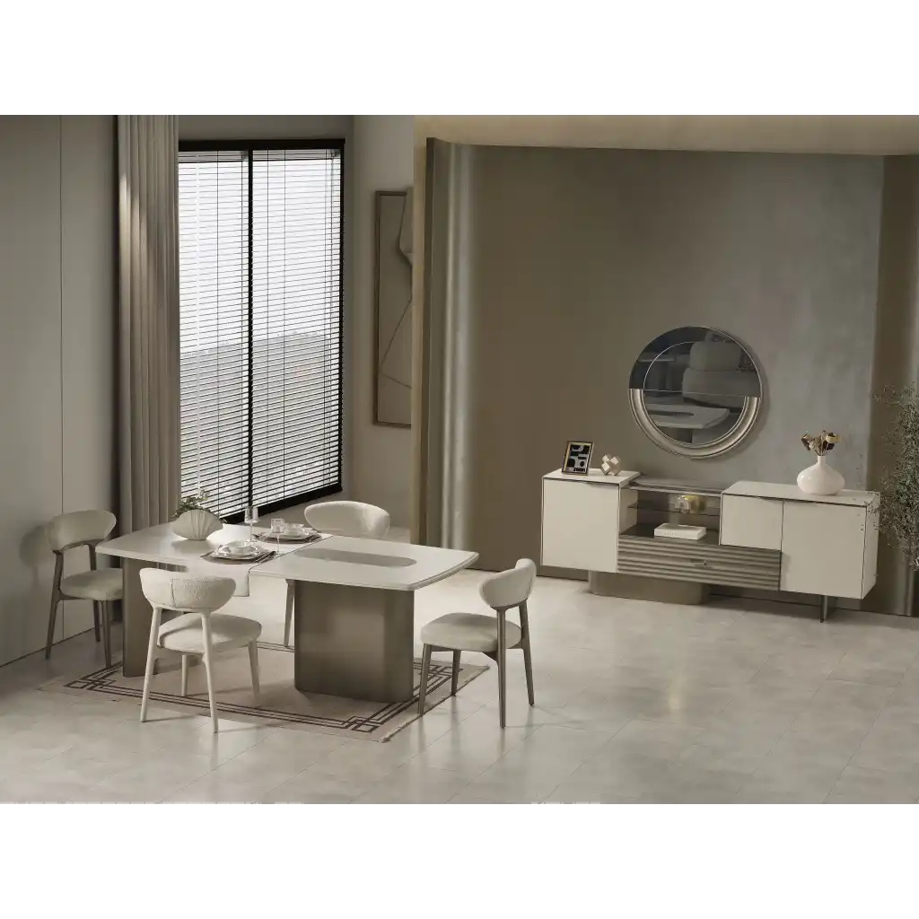 Occo Home Mobilya'nın özenle tasarladığı İnegöl Mobilya Verona Yemek Odası, estetik ve fonksiyonelliği bir arada sunarak yemek odası deneyiminizi farklı bir boyuta taşır. İnegöl Mobilya kalitesini evinize getiren bu özel seri, modern tasarımı ve sağlam yapısı ile uzun yıllar güvenle kullanılabilir.